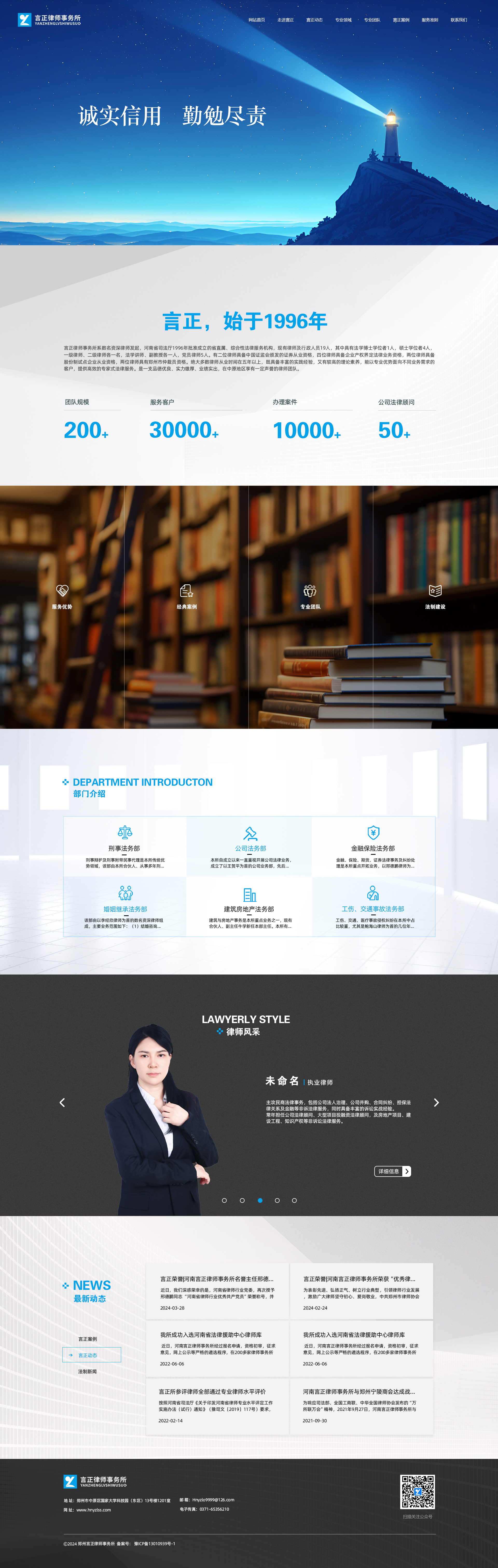河南言正律师事务所系数名资深律师发起,河南省司法厅1996年批准成立的省司法厅直属、综合性法律服务机构。现有律师、实习律师及行政人员30余人,其中具有法学博士学位者2人 ,硕士学位者5人,一级律师、二级律师各一名,三级律师五名,法学副教授、讲师各一人,党员律师5人其中三名律师具备中国证监会颁发的证券从业资格;四位律师具备司法部颁发的企业产权界定法律业务资格;两位律师具备股份制试点企业从业资格; 两位律师具有郑州市仲裁员资格;两位律师系河南省律协及郑州市律协理事 ;五位律师在省律协专业委员会任委员;绝大多数律师从业时间五年以上,既具备丰富的实践经验,又有较高的理论素养,能以专业优势面向不同业务需求的客户,提供高效的专家式法律服务。是一支品德优良、实力雄厚、业绩实出,在中原地区享有一定声誉的律师团队。