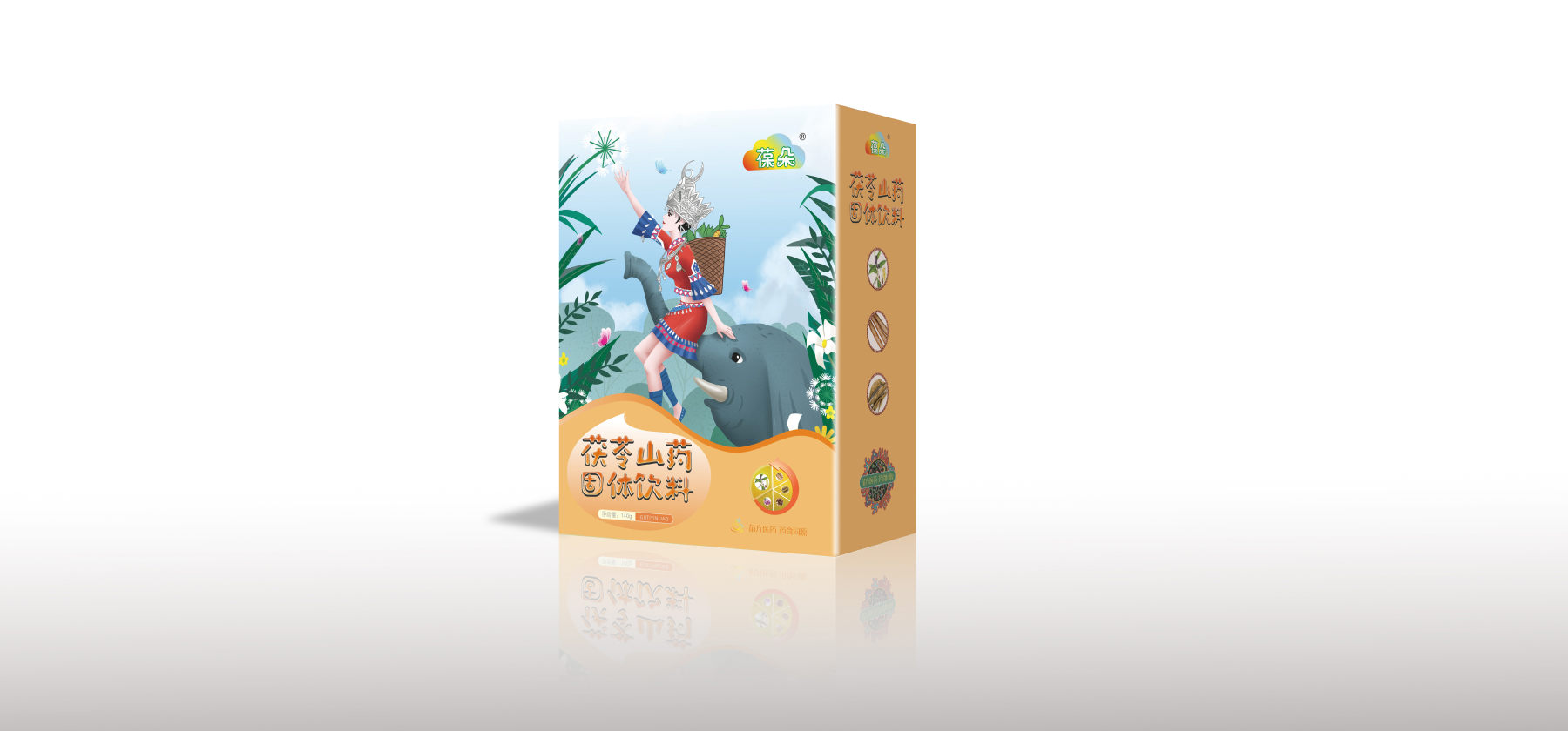 包装设计的灵魂摆脱不了这两个字,一个好的创意能让人耳目一新,对整个包装产生良好的印象。在公司设计的众多案例中,选择“葆朵”这一产品举例。该产品是孕婴系列,主打的是“苗医苗方”,客户在和设计师沟通时,明确表达想要把产品包装的像苗族产品一样。在网上进行浏览信息的基础上,设计师本身的想法,将包装设计为苗族妈妈采药的过程,一共是四步。
